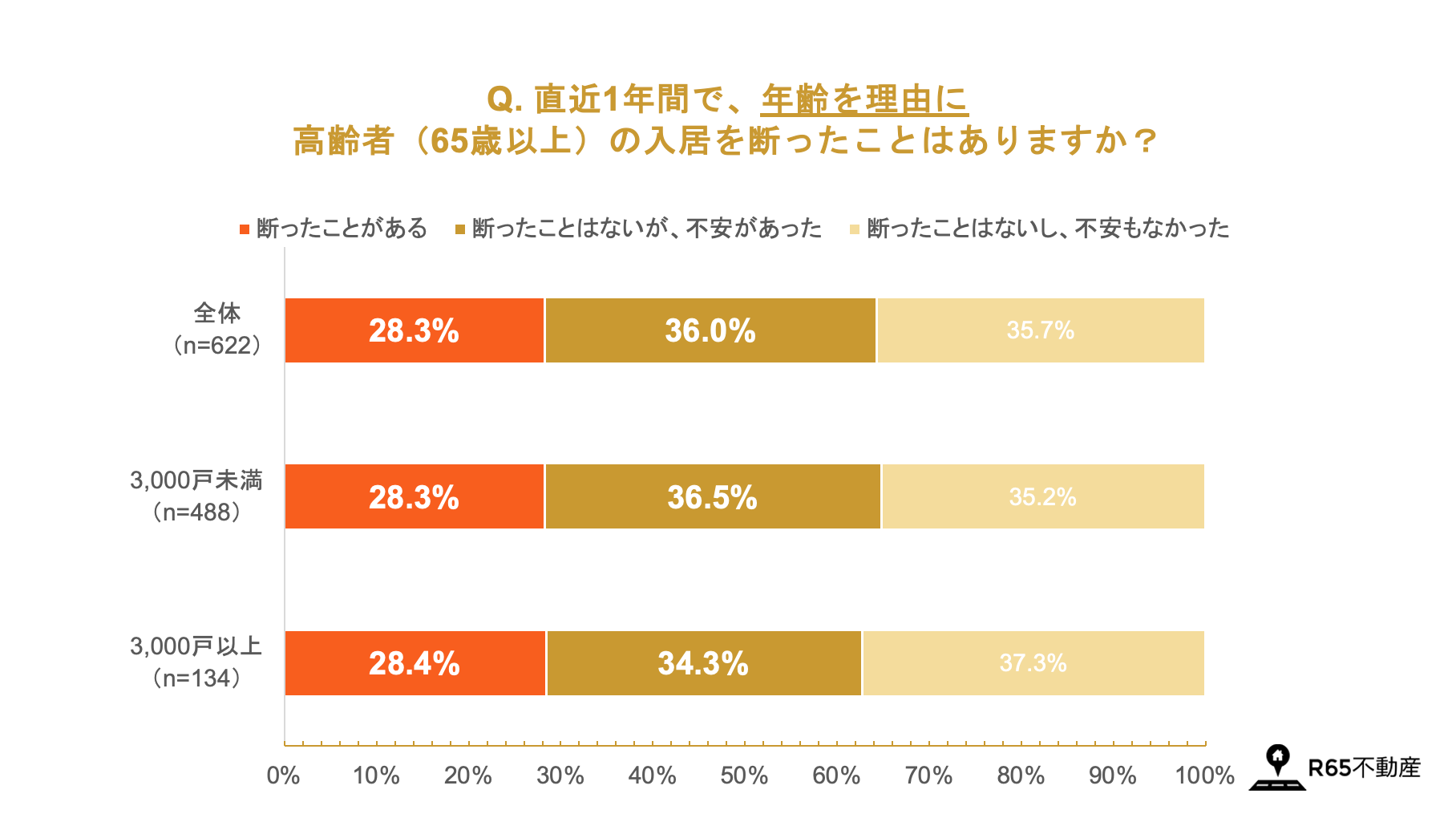 - 28.3%が「直近1年間で、年齢を理由に高齢者の入居を断ったことがある」と回答。「高齢者の入居に不安を抱いている」割合は、6割以上(64.3%)。