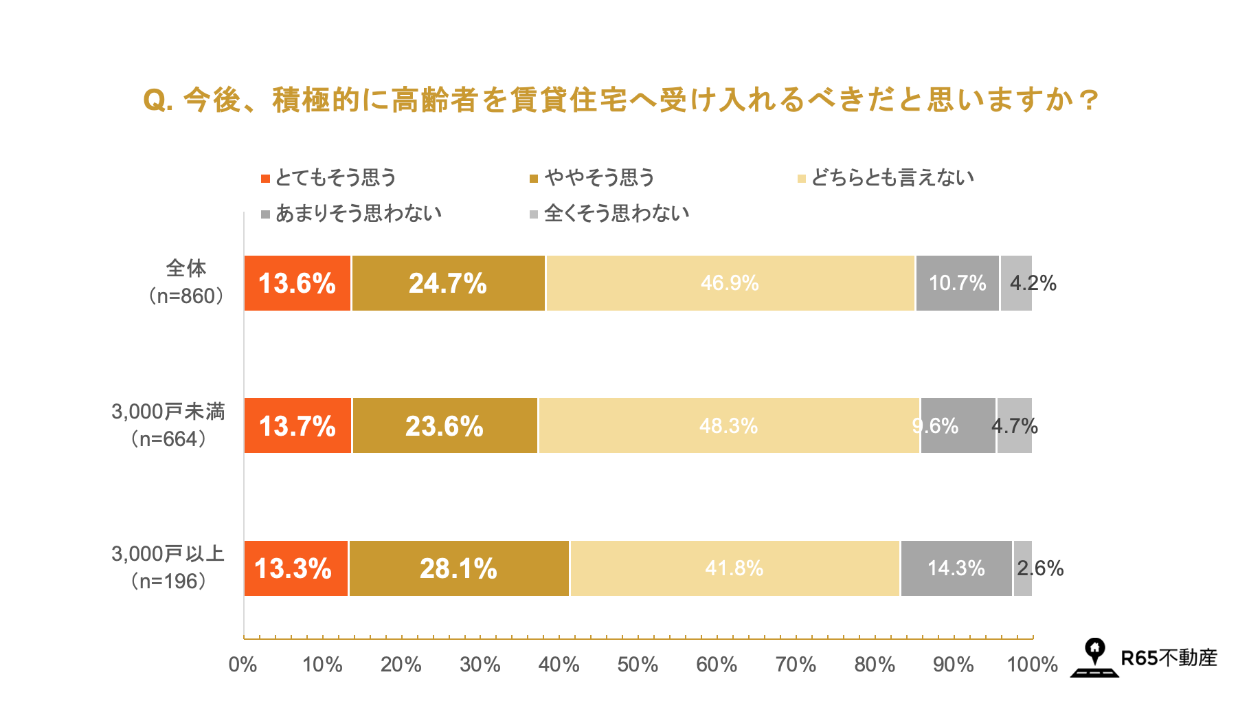 65歳からのお部屋探しを専門で支援する株式会社R65(本社:東京都杉並区、代表取締役社長:山本遼、以下「R65不動産」)は、全国の賃貸業を行う不動産管理会社に対して「高齢者(65歳以上、以下「高齢者」)向け賃貸に関する実態調査」を行いました。