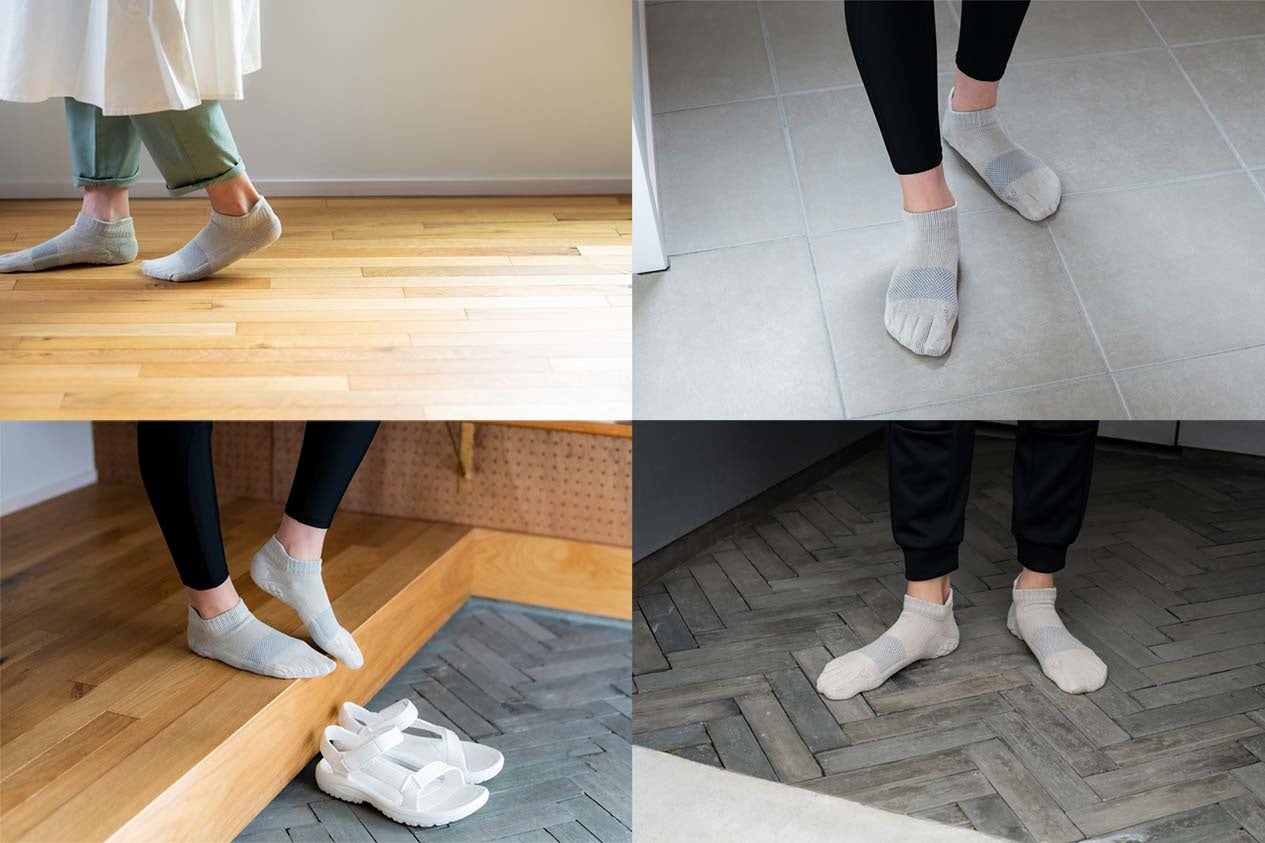 「足が疲れやすい」「かかとがカサつく」など日常的な悩みの解決だけでなく、足本来の機能を引き出すことで身体の不調を未然に防ぐ靴下を目指します。山忠ではこのブランドを、従来の靴下の概念を超えた「FOOT HEALTH WARE(フットヘルスウェア)」と位置づけています。これは、商品を通じて健康という社会課題に取り組む私たちの心構えでもあります。