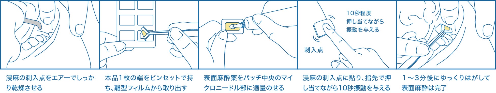 歯科表面麻酔薬剤をより迅速に*2到達させるマイクロニードルパッチ。