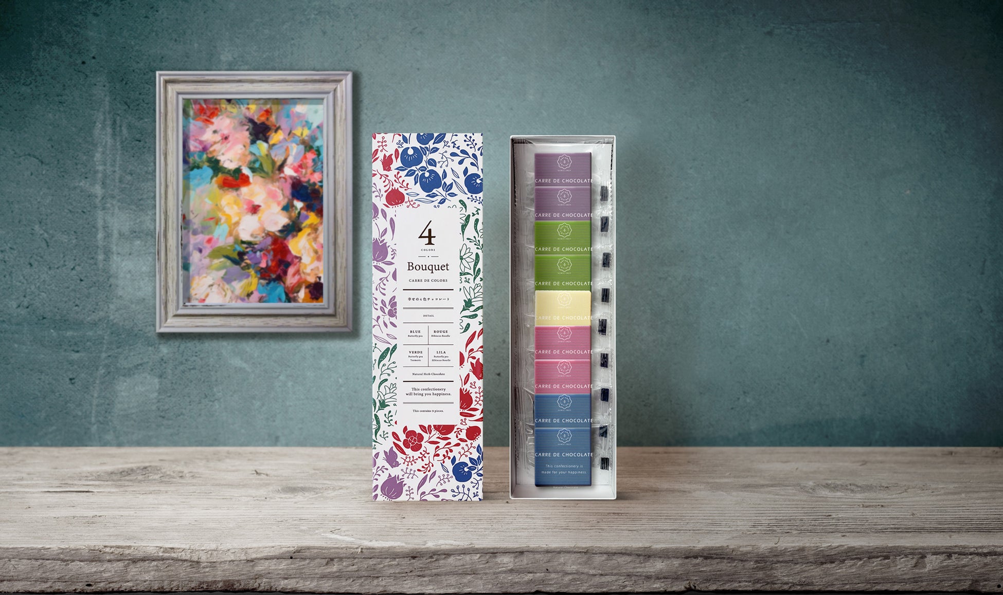 商品:CARRE DE BOUQUET ブーケ 幸せの4色チョコレート 9枚