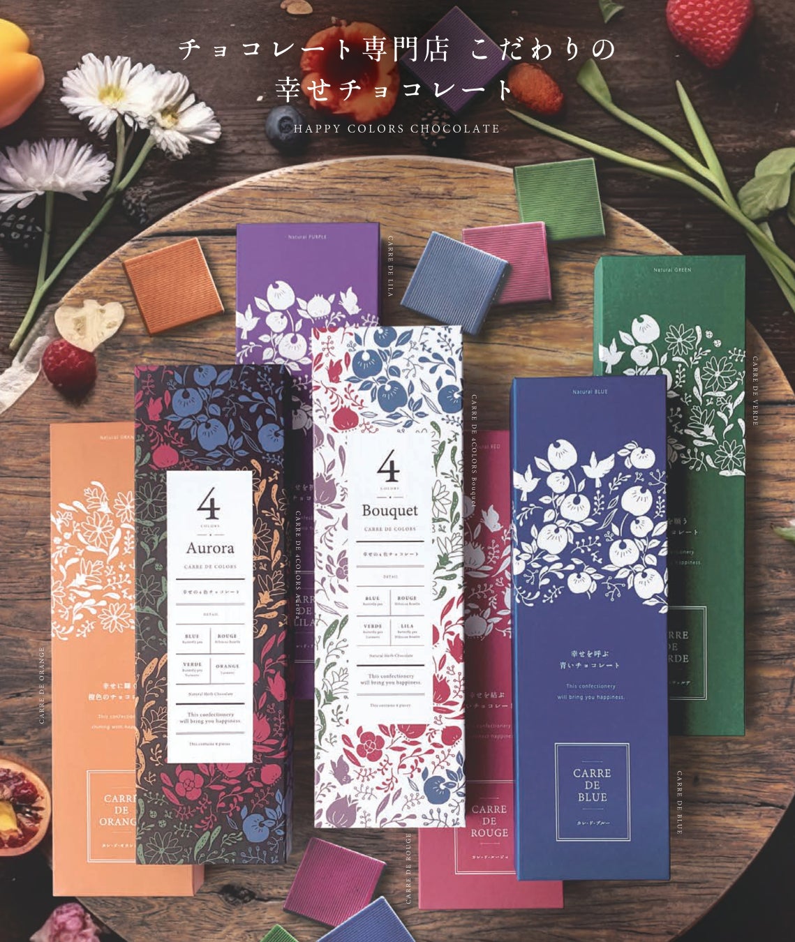 商品:CARRE DE AURORA オーロラ 幸せの4色チョコレート 9枚【*新商品】
