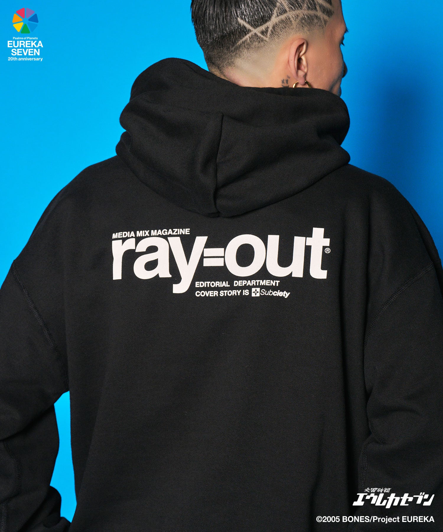 作中に登場する雑誌「ray=out」の編集部用のパーカをイメージ。