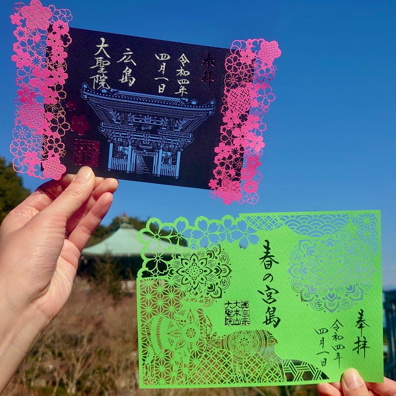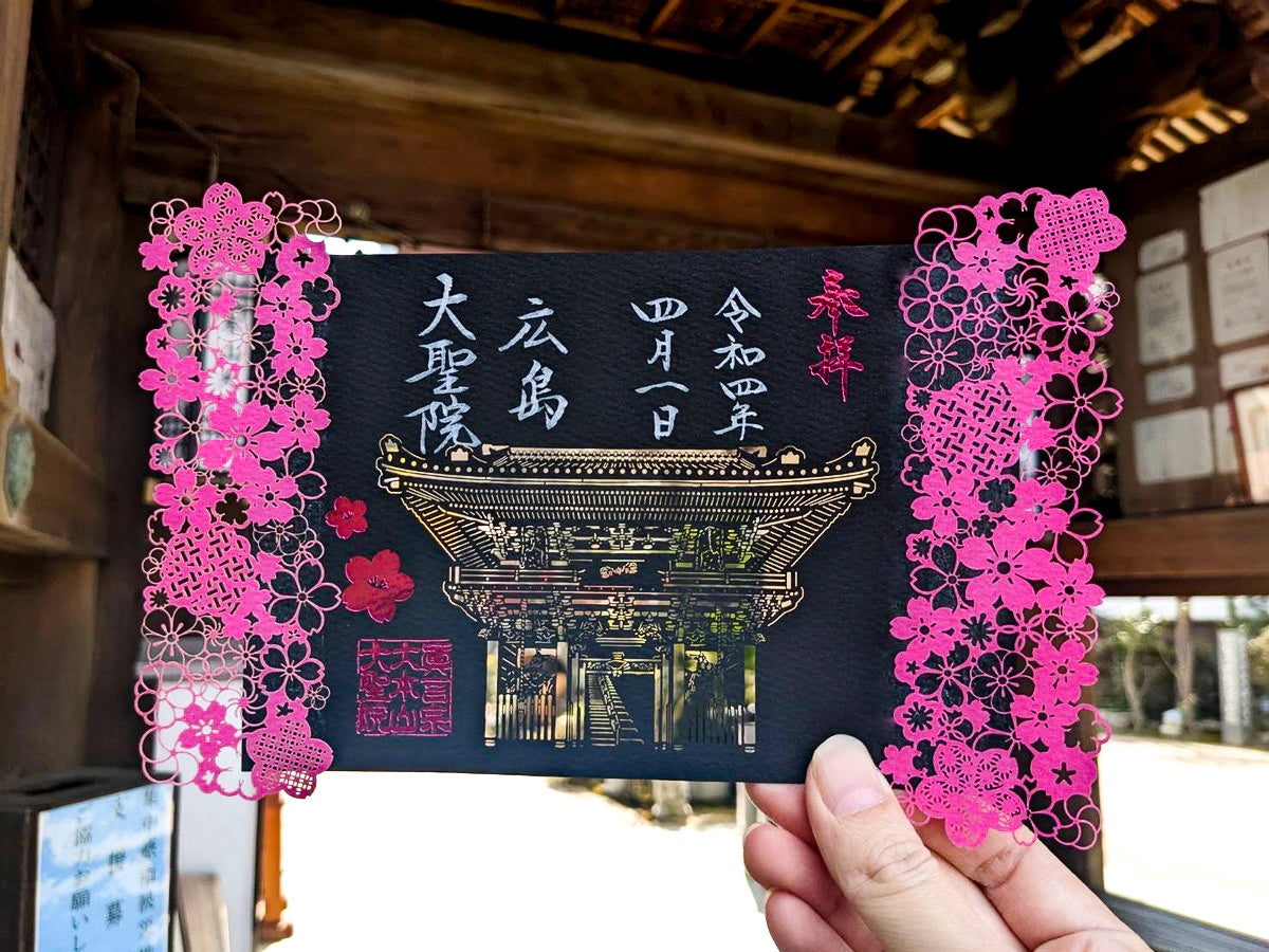世界遺産の島 宮島大聖院にて春限定切り絵御朱印2種『春の宮島』『桜と仁王門』の授与開始