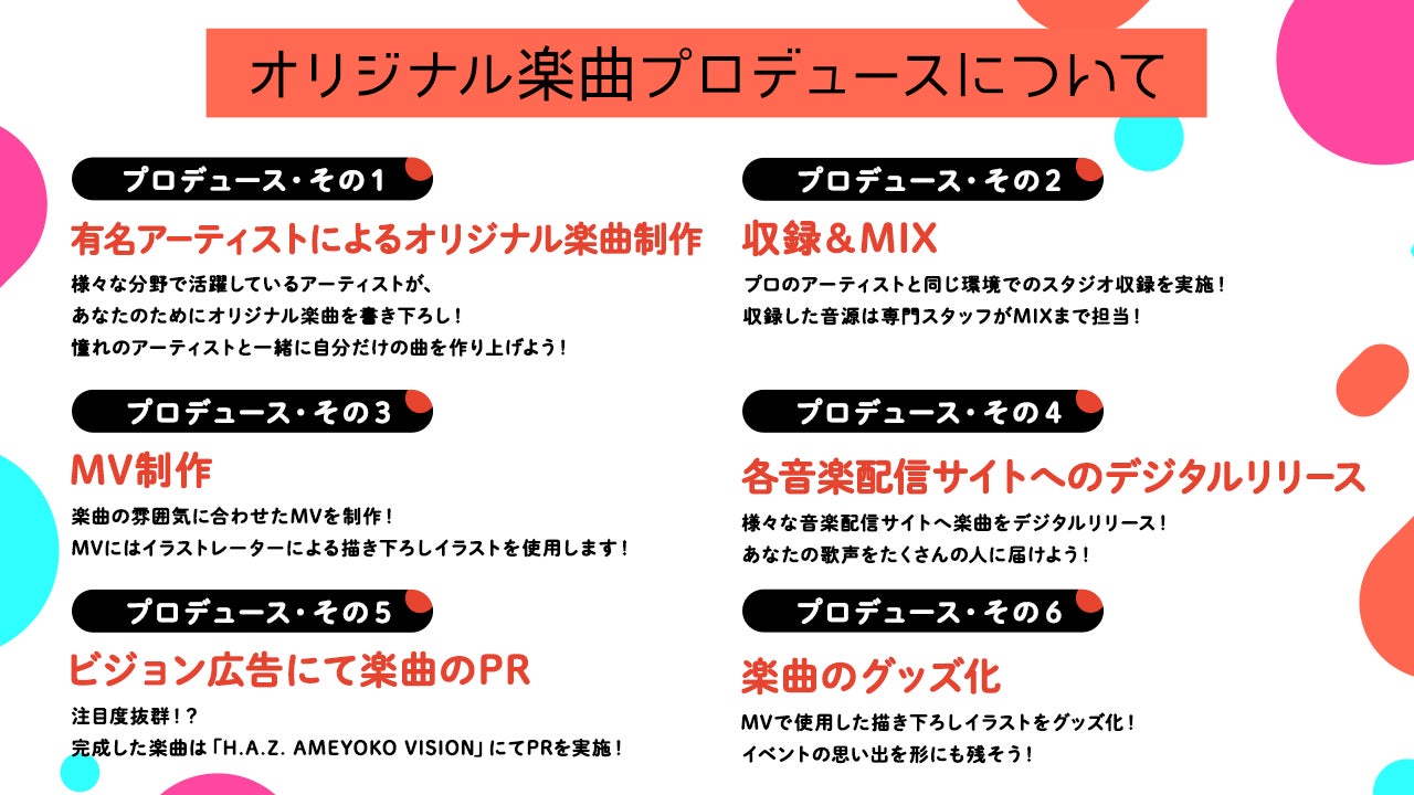 ・プロデューサーによって選ばれた1名がオリジナル楽曲のプロデュースを受けることができます。