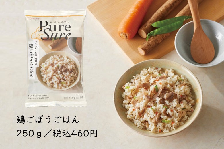 精白米(国産)、野菜(ごぼう(国産)、にんじん、さやえんどう)、鶏もも肉(国産)、しょうゆ、パーム油、砂糖、清酒、かつお節エキス、米発酵調味料、食塩、(一部に小麦・大豆・鶏肉を含む)
