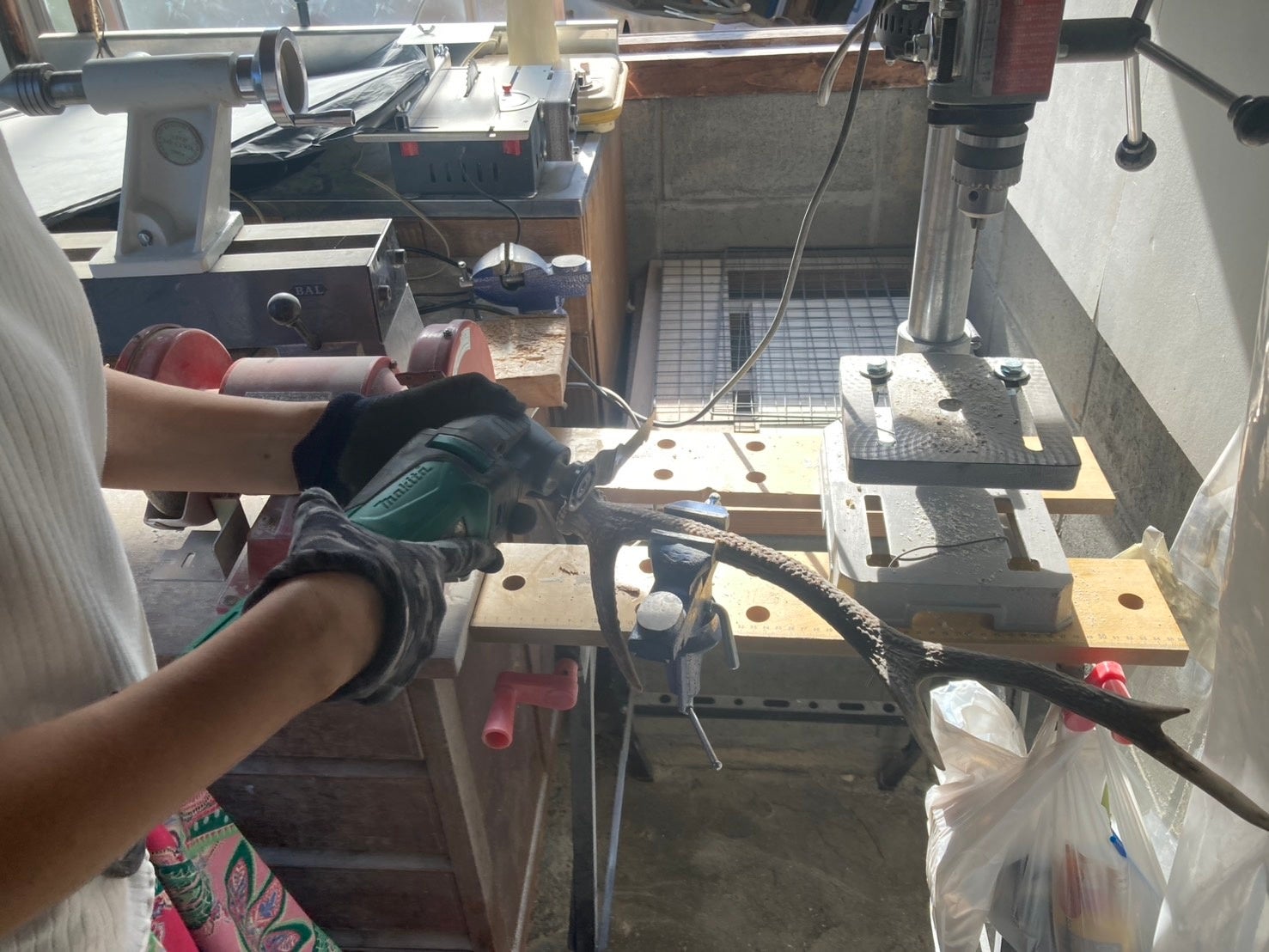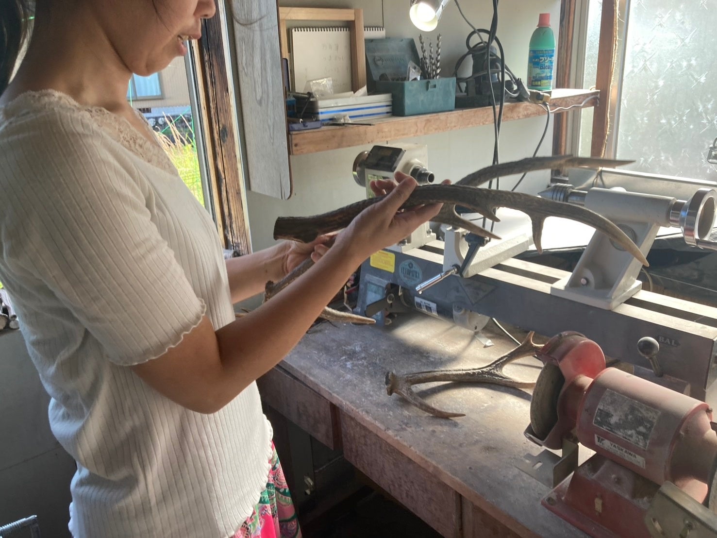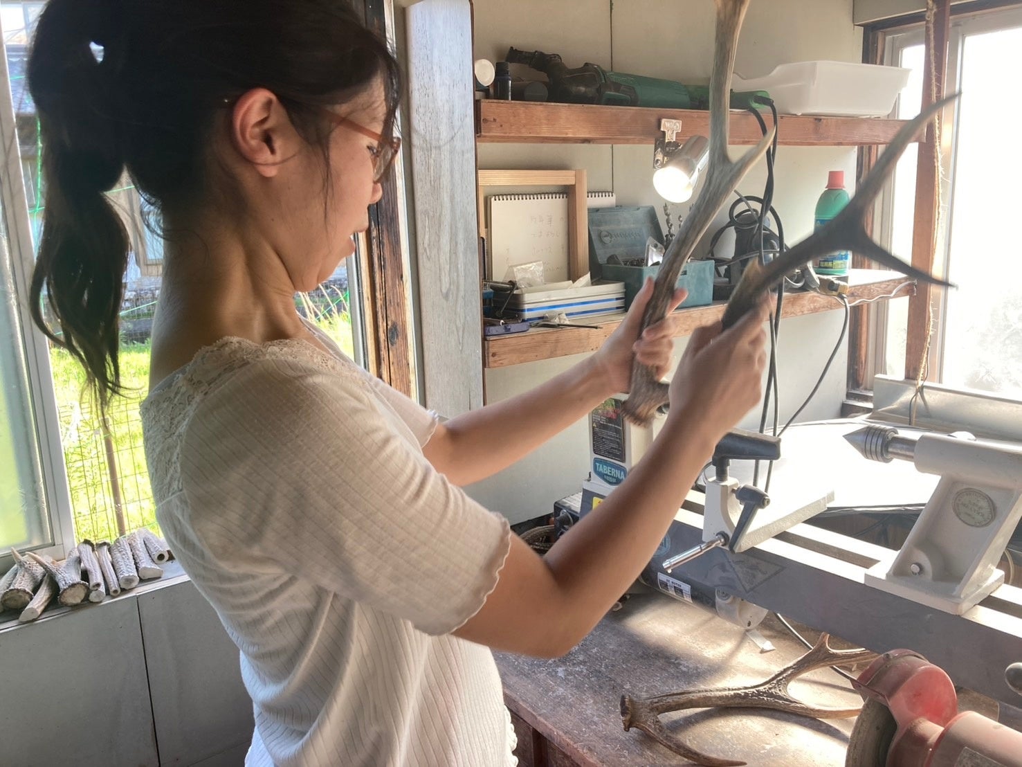 成人後、鹿の角という自然素材の持つ力強さと繊細さに魅了され、独学で加工を始めました。