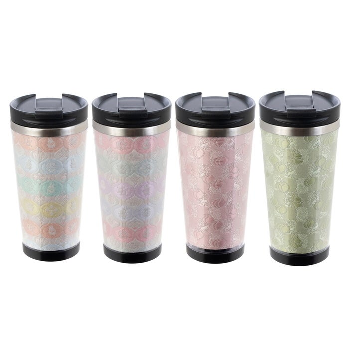 鮮やかな伝統文様を配した美術織物を内包するオリジナルタンブラー(飲料用)はオフィスにもアウトドアにも丁度いい容量420ml。SDGsや環境負荷が気になる方にも。