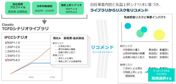 組み込まれた「クラウディオTCFDシナリオライブラリ」から自社に影響のある気候変動シナリオを