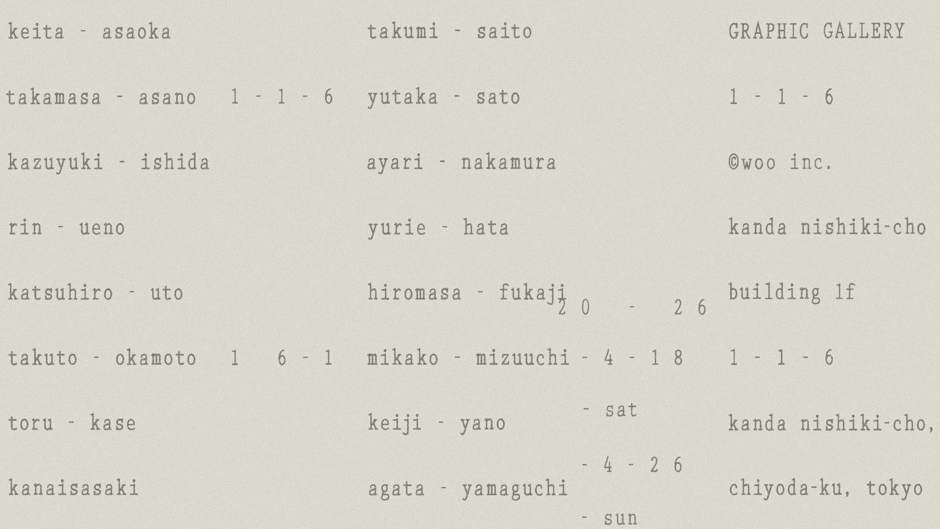 2026.4.18 (sat) - 4.26 (sun)