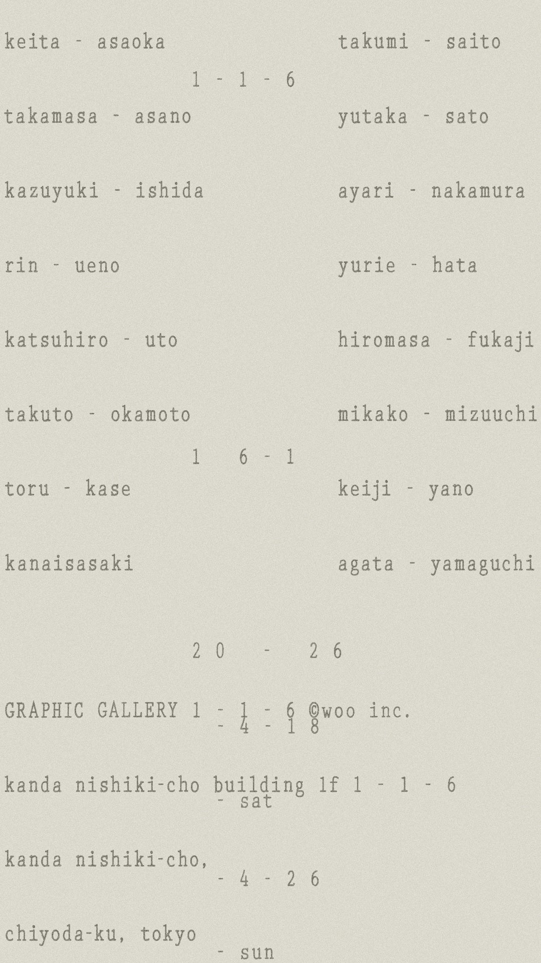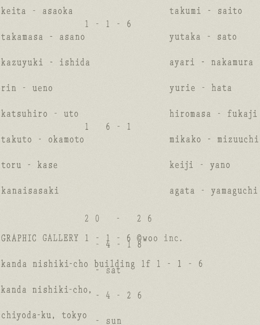 神田錦町のグラフィックギャラリー「1-1-6」にて、16名のグラフィックデザイナーによる1人1点のポスター展示「16-1」を開催。 会期:4.18 (sat) - 4.26 (sun)
