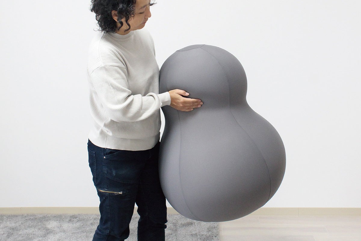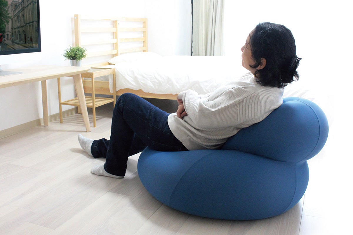 MOGU®ダルマンソファは、大小2つの球で体をやさしく支えるダルマ型のソファです。ソファの中央に座れば背もたれができるため安定した姿勢が保て、ソファの下部に座ると体重移動でリクライニング効果が得られます。