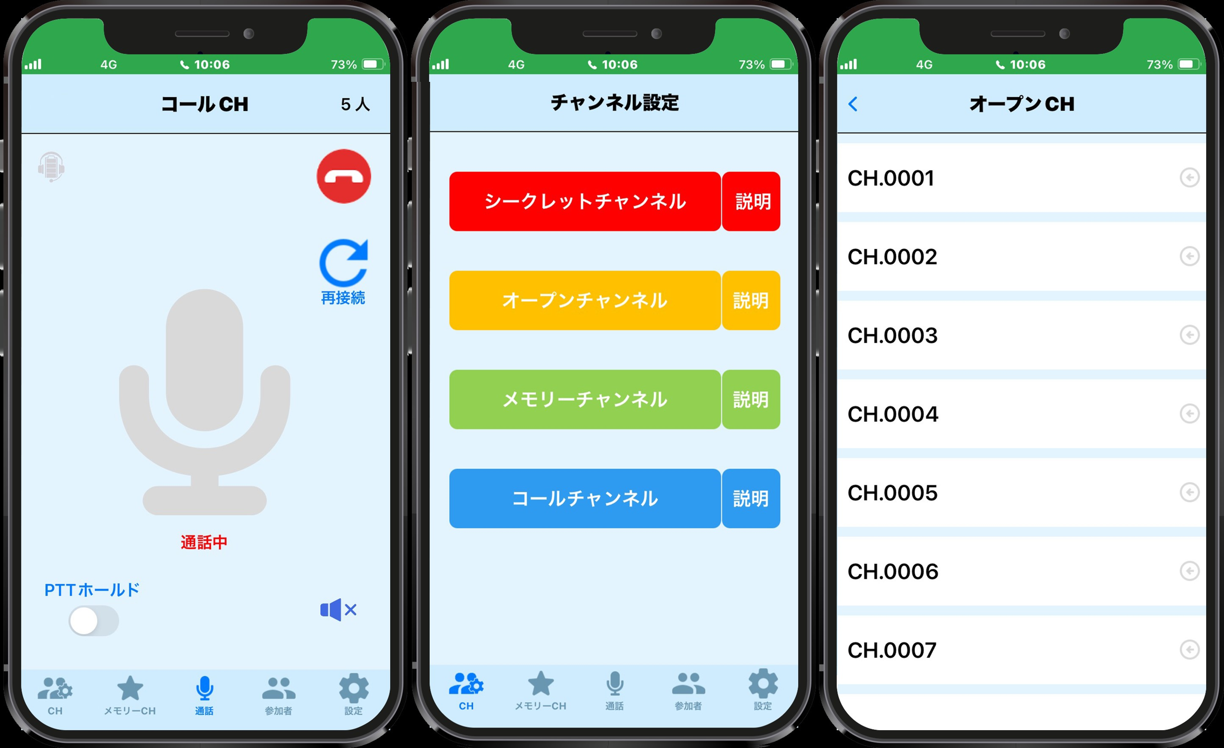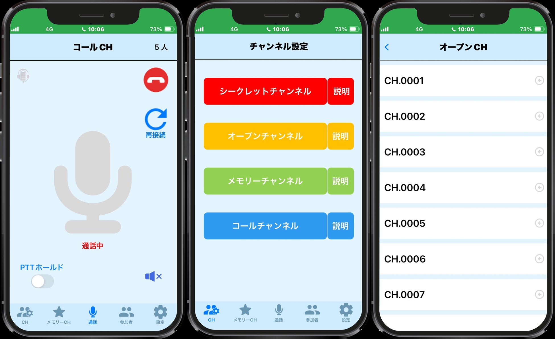 誰でも通話が出来る『オープンチャンネル』×500chから1chを選択して通話ができますので、