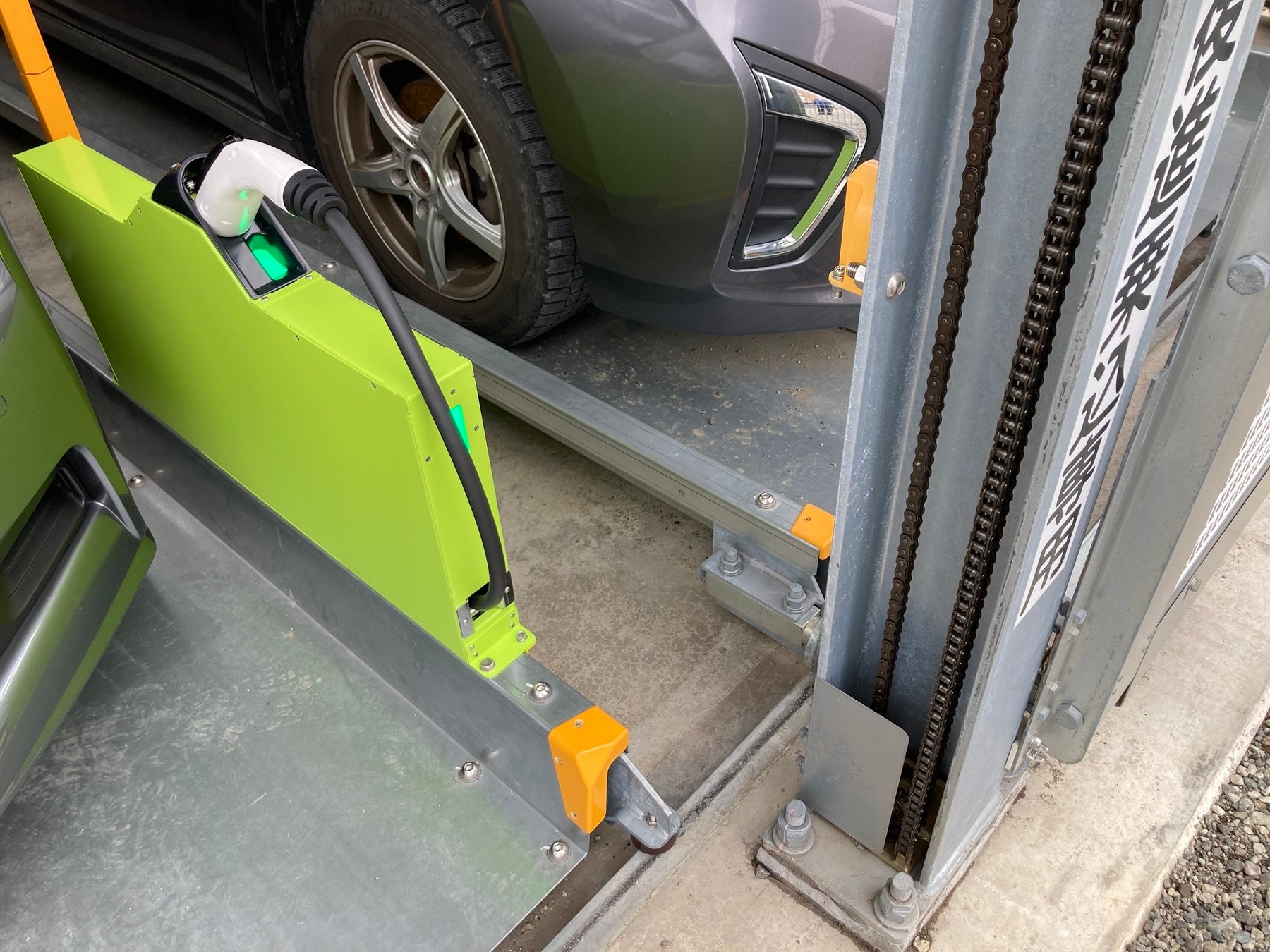 日本は2030年代半ばまでにガソリン車の新車販売を禁止する動きや、脱炭素社会に向けてEV(電気自動車)に注目が集まっており、マンションやオフィスビルなどへのEV充電設備の導入が急がれています。特に都心部では機械式駐車場が多く、二多段式駐車装置の昇降横行式の場合、上下左右の動きをしますので、パレット上に余計な付属品を置いてはいけないというのが原則です。