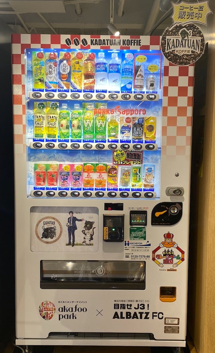 横浜副都心ALBATZ FCは、ポッカサッポロフード&ビバレッジ(株)の寄付型自動販売機を設置いただけるオーナーさまを募集しております。ご支援よろしくお願い申し上げます。