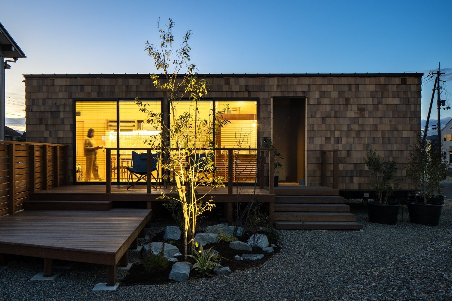 都心と自然豊かな地方での二拠点生活を送るリモートワーカーのご夫婦。平日は都心で、週末は「ゼロインフラASOBOX」で趣味の家庭菜園を楽しみながら過ごす。万が一の災害時には、この場所が家族を守る安全なシェルターに。場所に縛られず、環境にも優しい新しいライフスタイルを実現します。