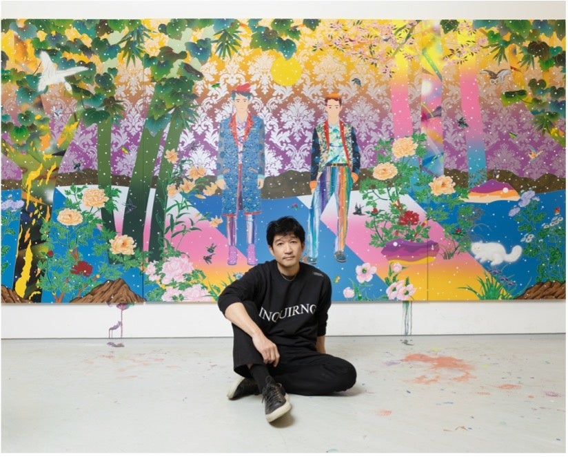 縦2.1メートル、横4.3メートルという、国内で発表された作品としては最⼤スケールで描かれたこの⼤作は、松⼭の代表的なシリーズ「Fictional Landscape」からのキャンバス作品となっており、古今東⻄の意匠やモチーフが独創的な絵画空間を構成しています。本作品では、今年デビュー25周年を迎える2⼈組アーティスト・ゆずとコラボレーション。“PEOPLE”というキーワードをコンセプトに、ゆずはニューアルバム『PEOPLE』(3/23発売)を発表。⼀⽅の松⼭は、同じ“PEOPLE”をテーマにゼロから新作「People With People」を制作し、その作品がゆずの『PEOPLE』アートワークにも使⽤されています。これまで村上隆⽒や名和晃平⽒など、様々なアーティストとコラボレーションしてきた「ゆず」が、デビューから四半世紀の節⽬に新たなタッグを組む松⼭智⼀の新作「People With People」を是⾮ご覧ください。(公式HP: https://kotaronukaga.com/ )■松⼭智⼀コメント 作品「People With People」について: