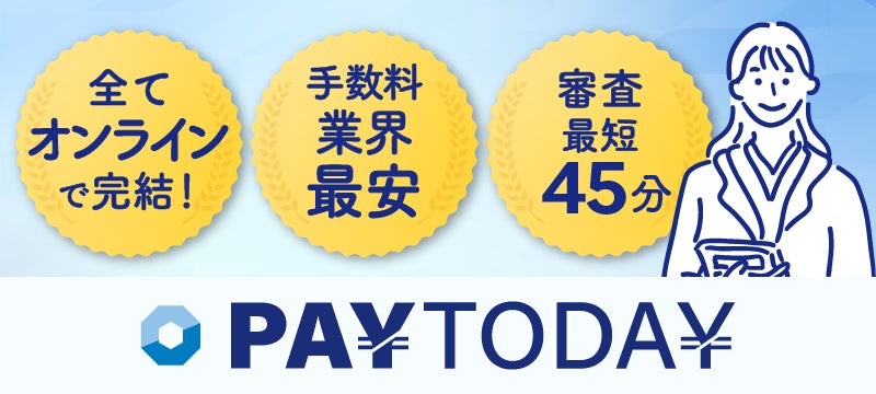Pay Todayの魅力は「手数料は業界最安」「全てオンライン完結」「審査は最短45分」。ライフスタイルの多様化により、 “もっとフリーランスの方々がお金の面で悩まず事業拡大をしていける環境をお手伝いしたい”という想いから、サービスの提供を始めました。“フリーランスの方々の事業成功の機会を潰さず支援すること”が弊社のモットーです。