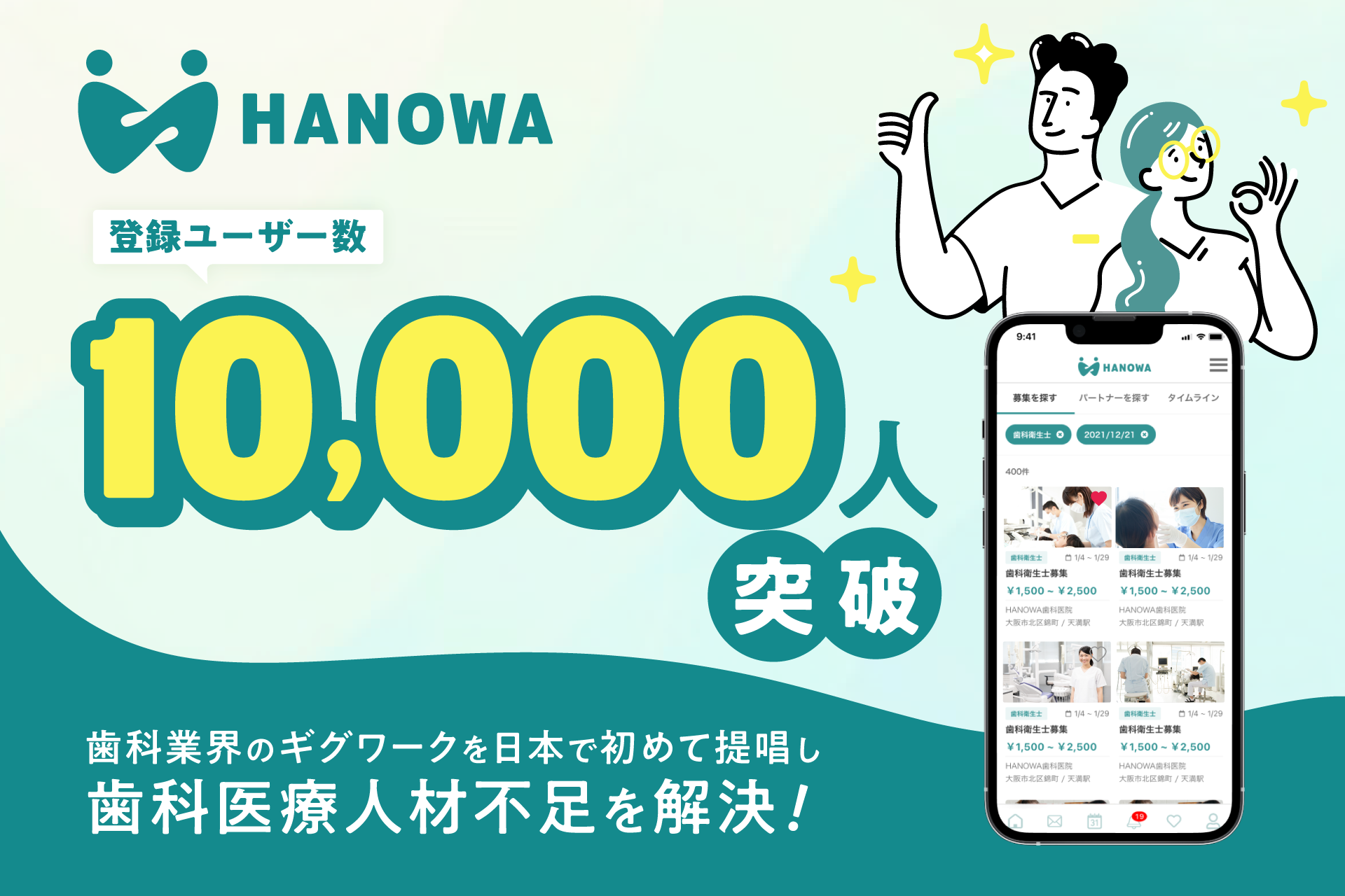 歯科医院と歯科医療従事者をつなぐマッチングプラットフォームHANOWA、登録ユーザー数10,000人を突破!約7ヶ月で2倍規模に拡大