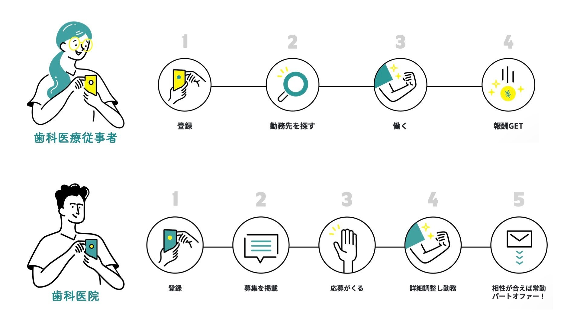 事業内容:歯科医療従事者のシェアリングプラットフォームの運営及び歯科医療従事者の人材紹介