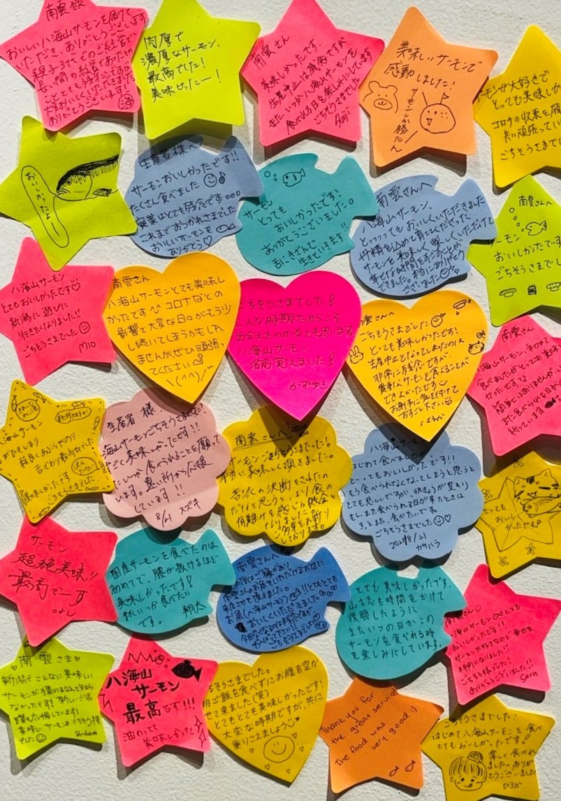 第4弾と称して実施した純国産ブランド八海山サーモンの寿司食べ放題は、9割以上のお客様が生産者さんへの温かいメッセージを書いてくださる好評ぶりで終了した。