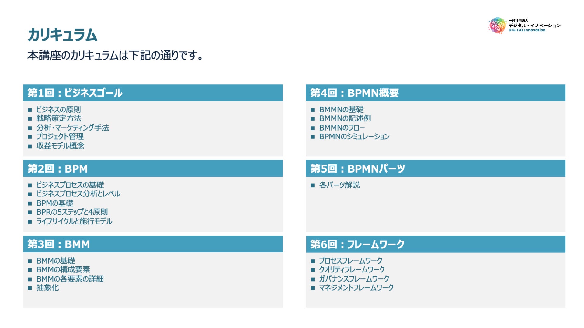 BPM基礎講座のカリキュラムは下記です。