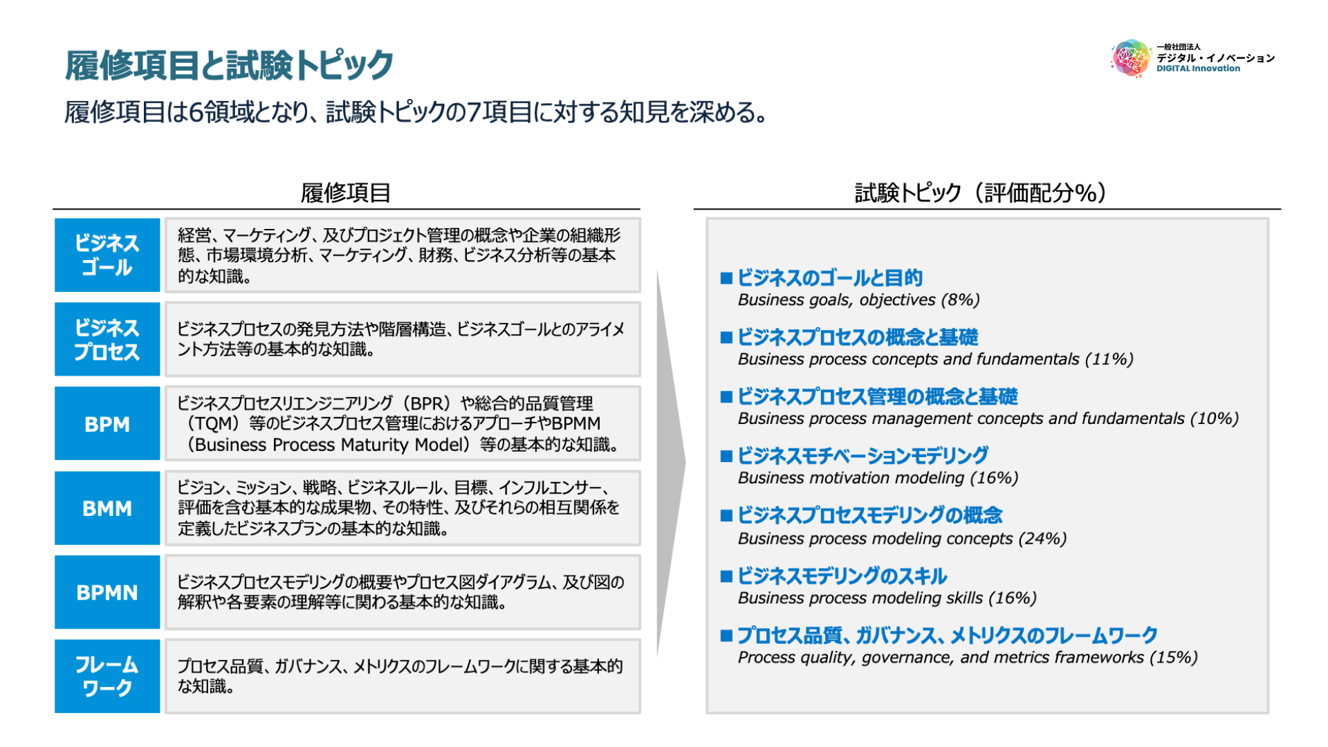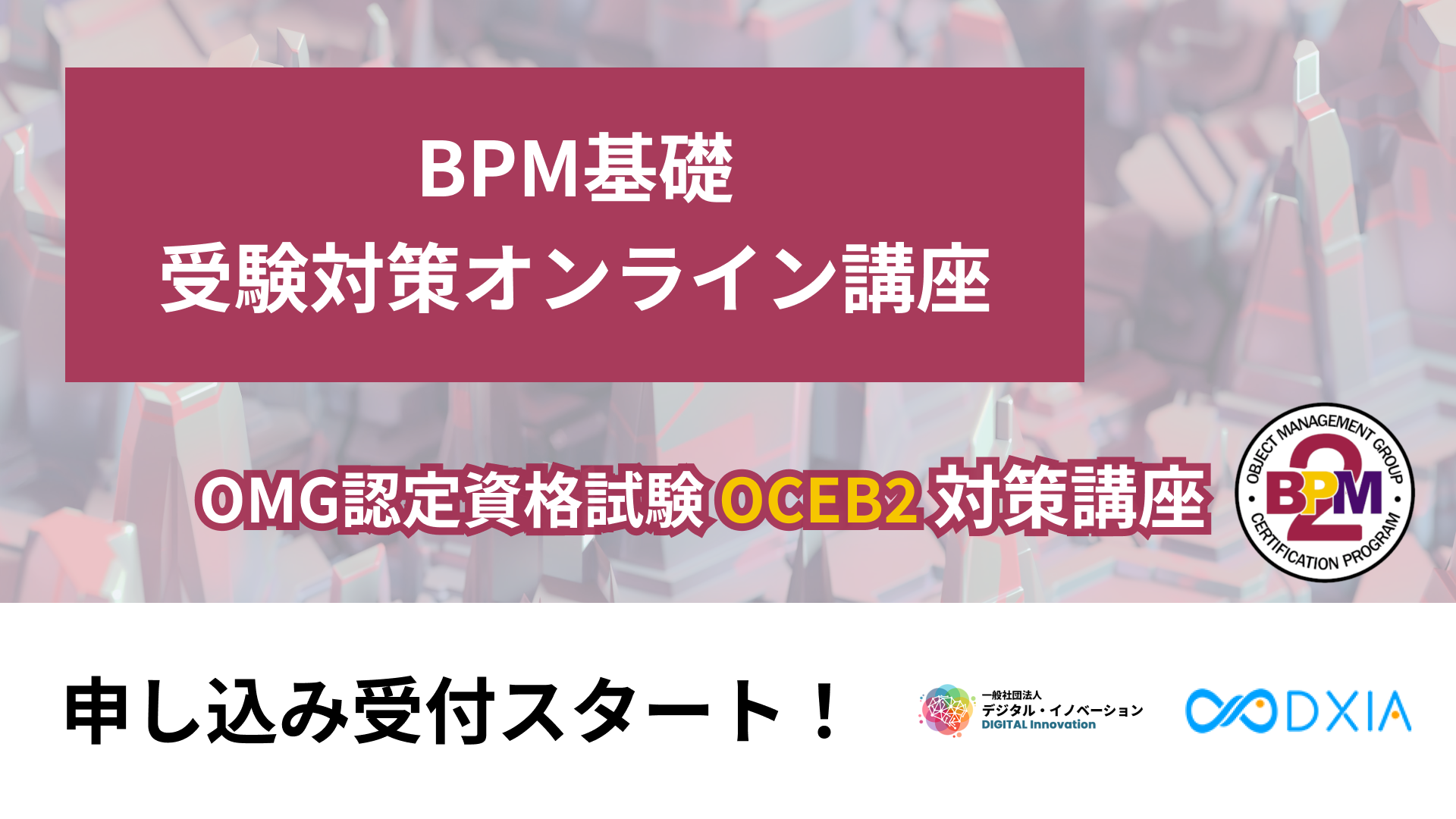 この現状を受け、今回ビジネスを体系立てるBPMの日本での普及に貢献すべく、米国にてBPM向けの資格試験を提供するOMGの試験対策として本講座が一般社団法人デジタル・イノベーションにて開設され、オンライン学習プラットフォームを当社が提供致しました。