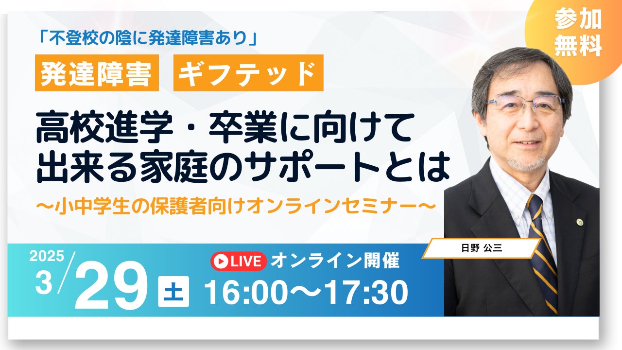 【無料オンラインセミナー開催】不登校と発達障害の関係を学び、家庭でできるサポートを考える