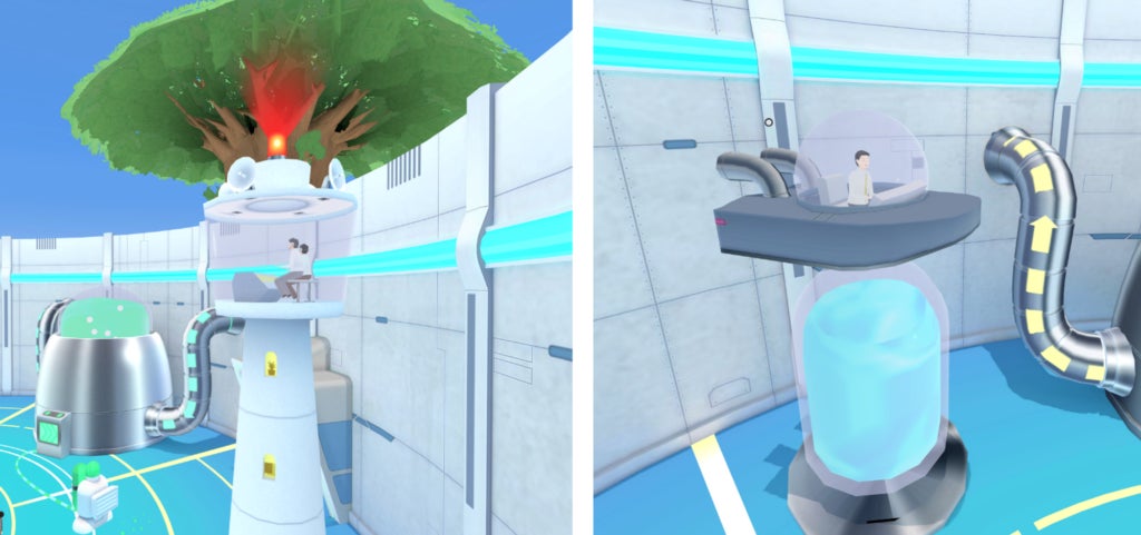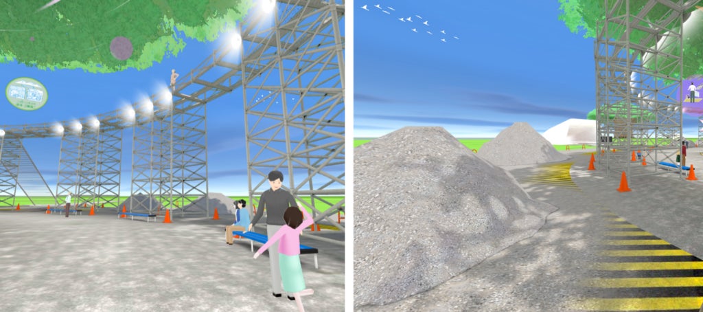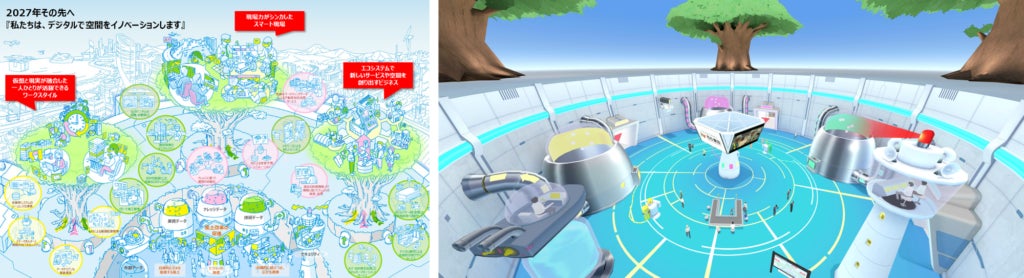 DXビジョンマップの画像をもとに、2Dからどのような3D空間のデザインにするかや、 オブジェクトの動きや機能について西松建設様と提案・協議を重ね完成に至っております。