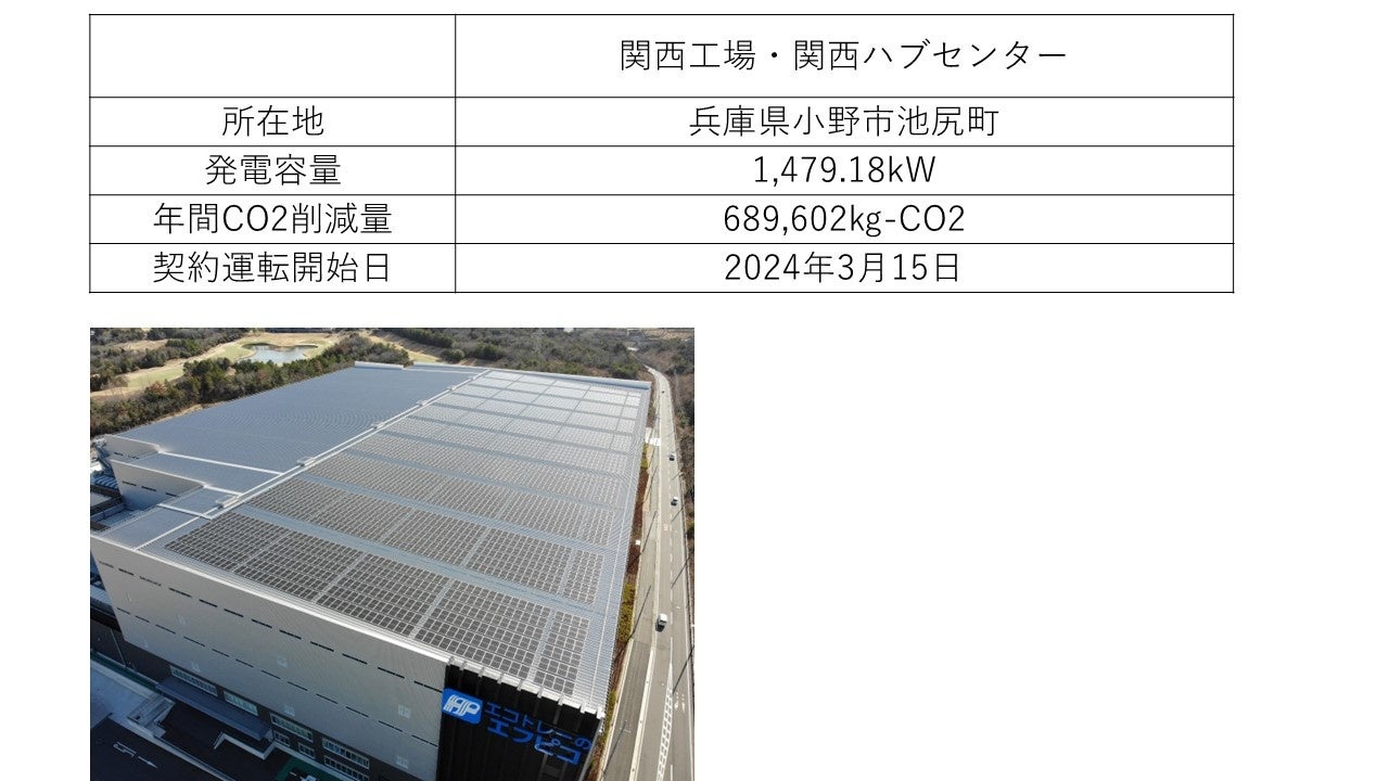 エフピコ関西の屋根上太陽光発電所の完工・商業運転開始