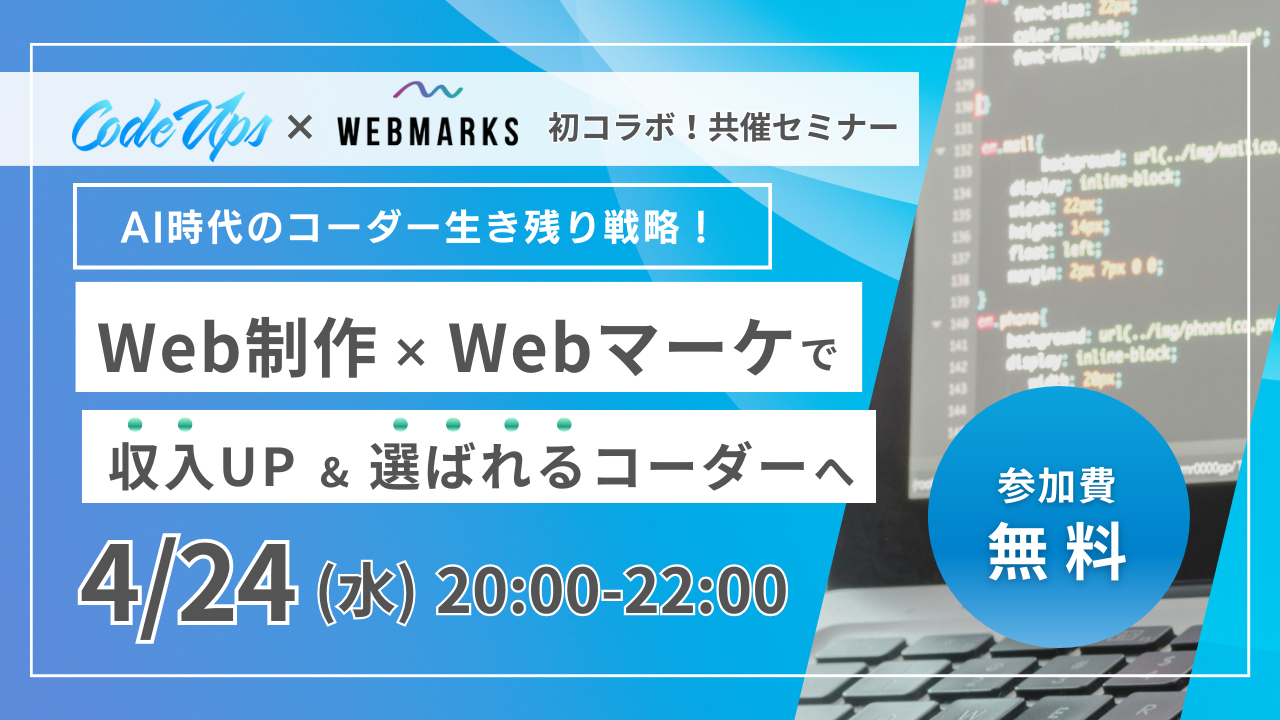 【CodeUps×WEBMARKS共催】AI時代におけるコーダーのキャリア戦略。Web制作×Webマーケティングで"収入UP"&"選ばれる"コーダーへ