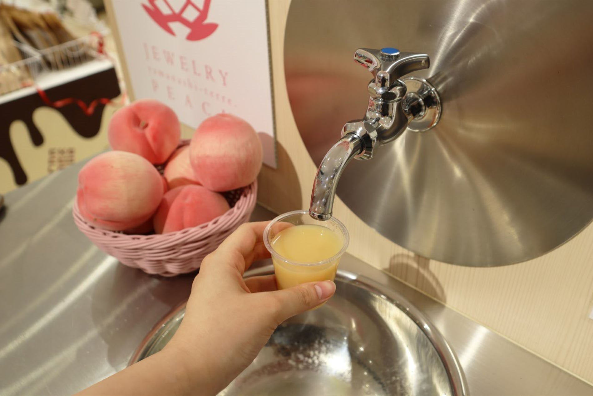 蛇口をひねると桃ジュースが!?富士山静岡空港しずおかマルシェ店で蛇口ももジュースのワクワク体験!!