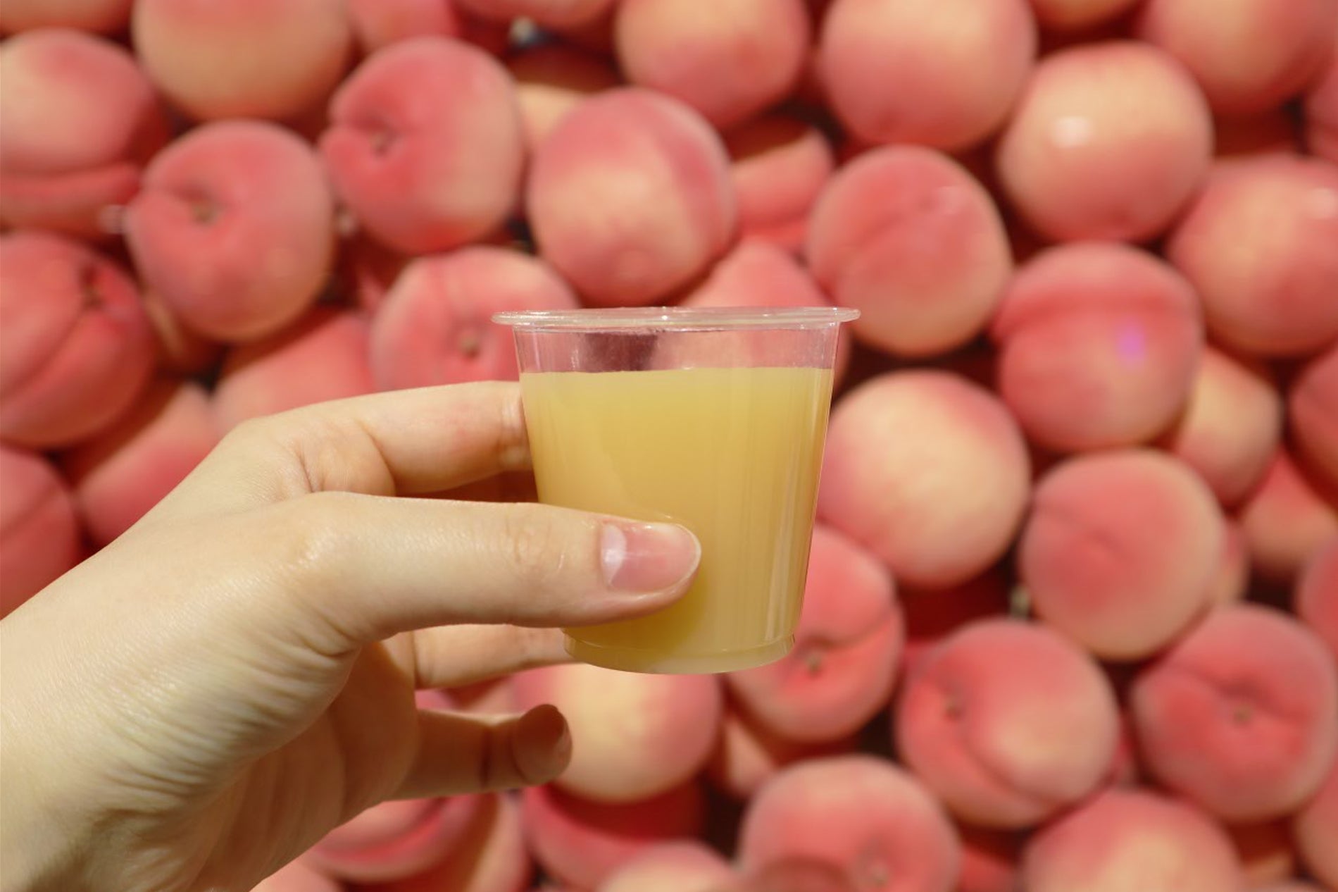 桃本来のを楽しめる、「地元産・無添加・無漂白」の100%桃ジュースを味わえます!