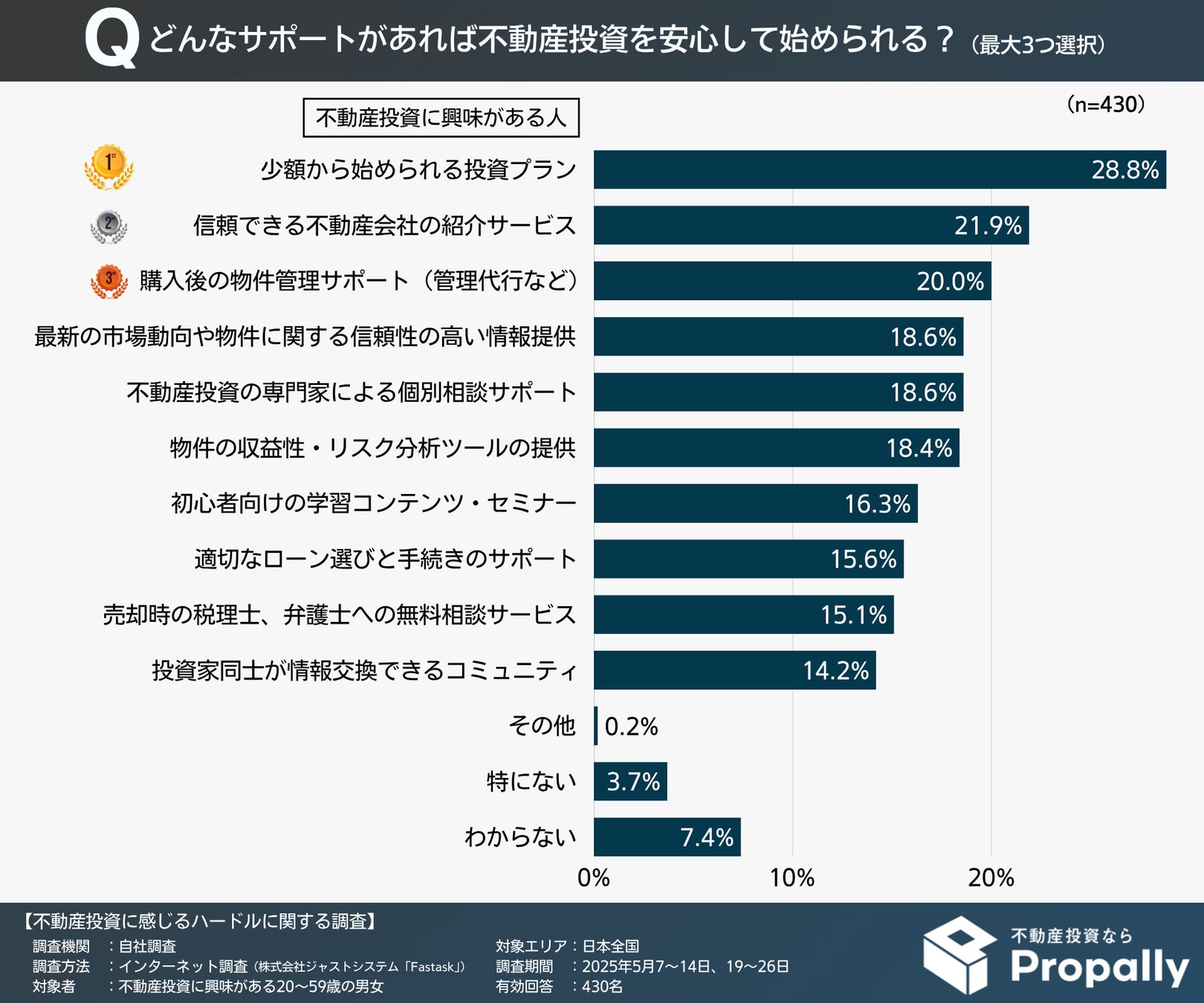 不動産投資に求められるサポートは、資金面のハードル軽減と信頼できる業者の紹介に集中している