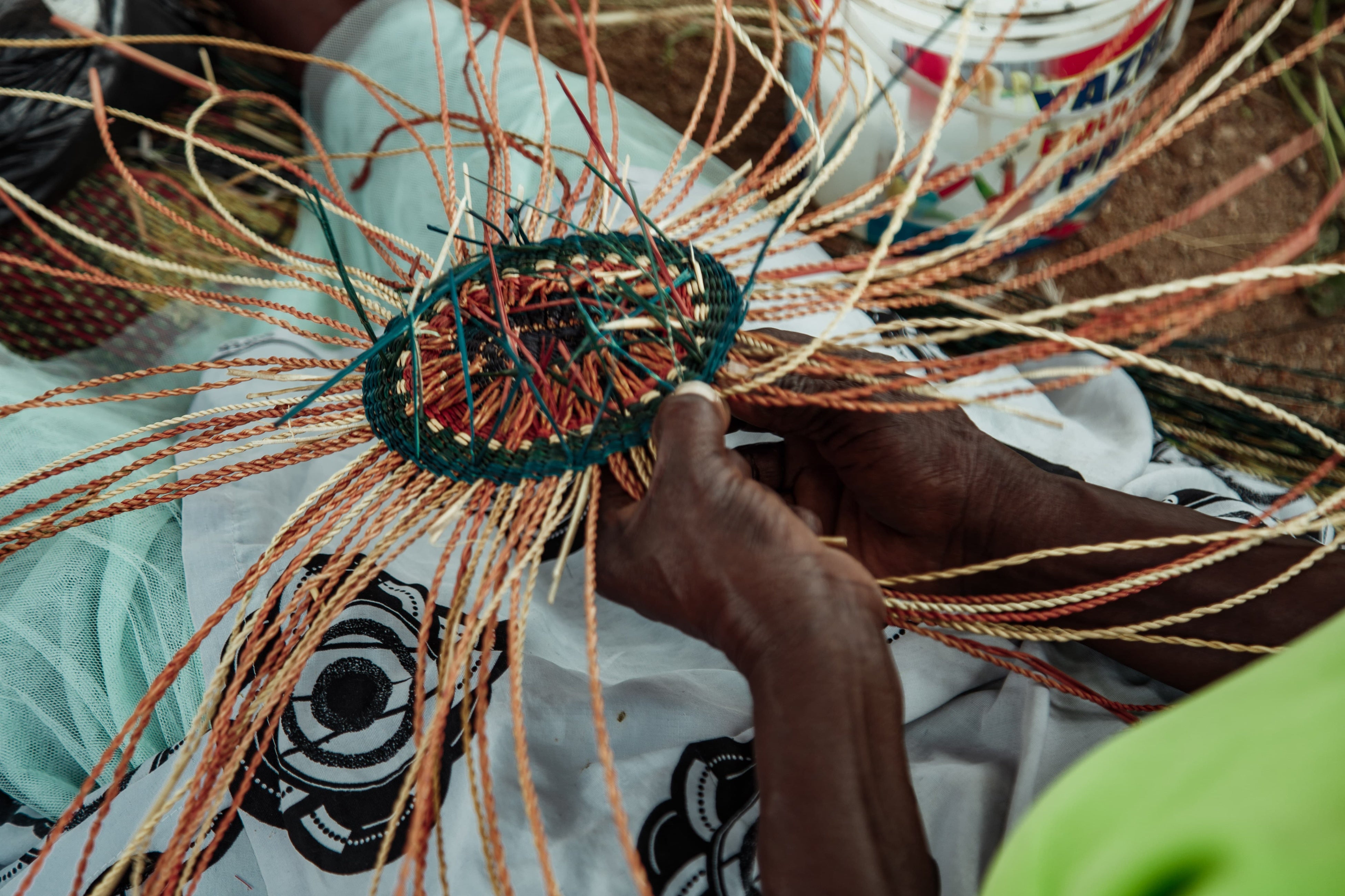 時間をかけて編んだバスケット類をはじめ、ファブリックアイテム(エプロン、テーブルランナー、ランチョンマット、など)が、ガーナから伊勢丹新宿店に届く予定です。