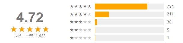 有り難い事に現在では5段階評価中平均スコアは「4.72」で1,000件以上の口コミが集まっております。