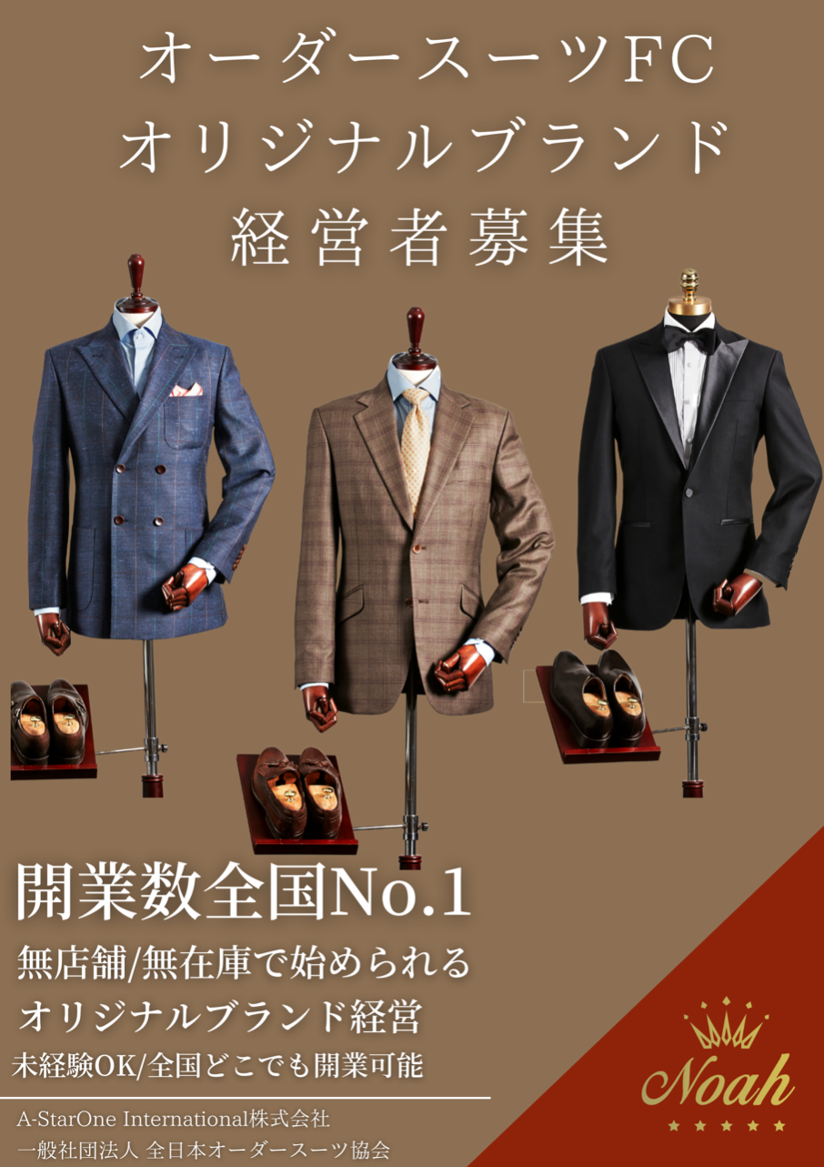 著名人御用達 完全予約制オーダースーツサロンNoahを運営。
