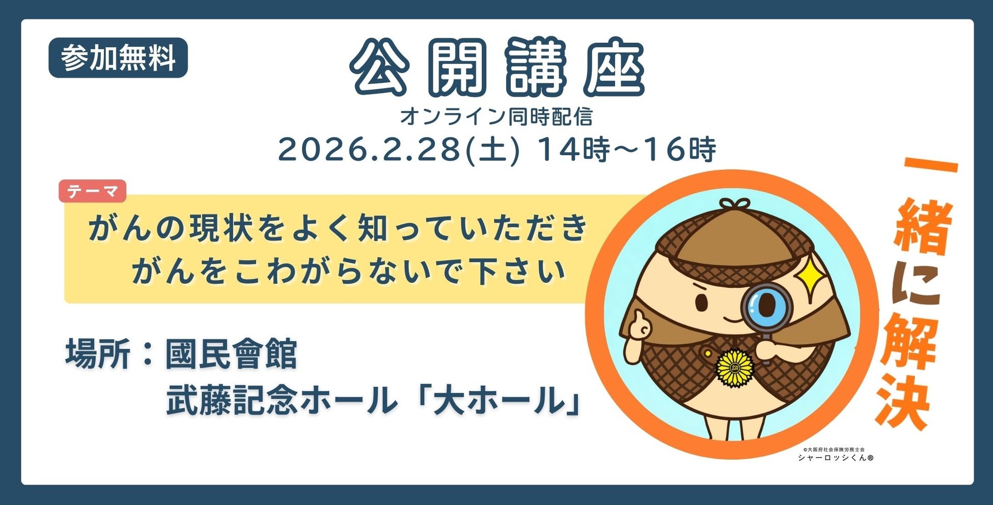 大阪府社会保険労務士会(大阪市北区/会長 大西宗明)は、無料公開講座「がんの現状をよく知っていただき、がんをこわがらないで下さい」を令和8年2月28日(土)に開催します。