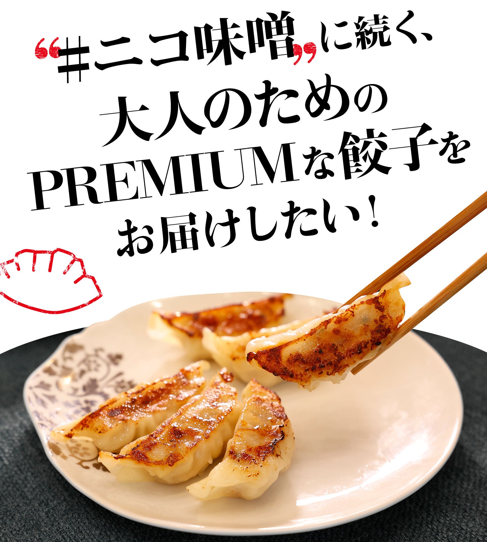 日々、ギョーザをお客様へ提供する中で、よりおいしく飽きずに楽しんでもらいたいという思いがあり、まず第1弾として『#ニコ味噌』愛知の八丁味噌をベースに、ギョーザの味噌ダレ開発しました。今回は第2弾としてギフトでも対応できるようにと『大人のPUREMIUM餃子』を開発しました。