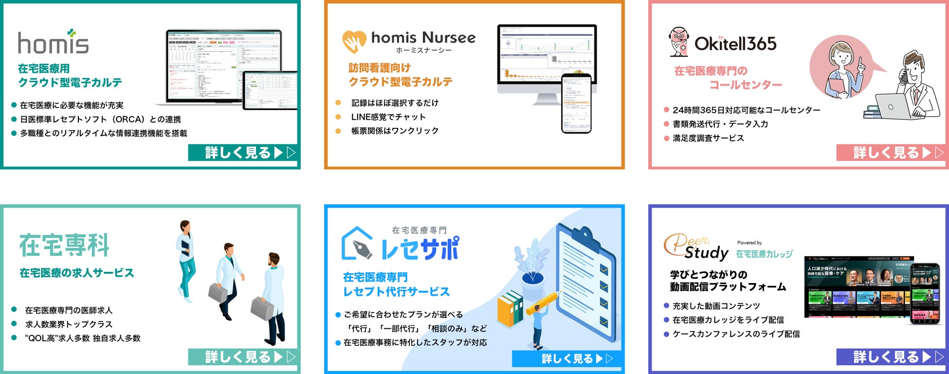 電子カルテを中心に在宅医療にかかわるレセプト代行、事務代行、開業・承継支援、経営コンサルティング、訪問診療専門医師紹介業など総合的なサービスを提供し、在宅医療機関の経営をトータルでサポートできる点が特徴です。