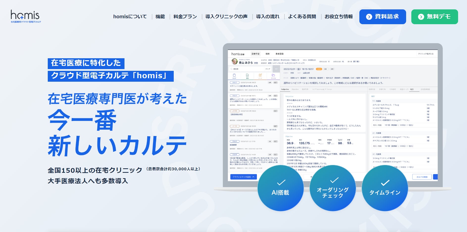 在宅医療用クラウド型電子カルテ「homis」(https://homis-mics.jp/)