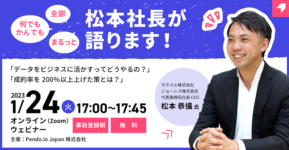 Pendo CEO×日本のトップリーダー データの利活用法などを伺う特別ウェビナーを主催 “ラクスル松本氏に聞く!起業、ビジネスとデータ、グローバルマインド“開催