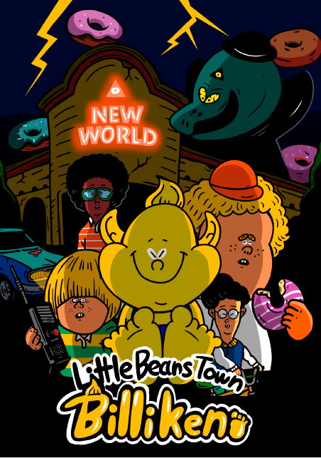 そんなビリケンクリエイターズの一人、URATA SPANCALLが描く”地図にない街 Little Beans Town"に、ビリケンさんがスーパーヒーローとして登場。仲間と力を合わせ、街の危機を救う…!?という奇想天外なストーリー仕立てとなっています。