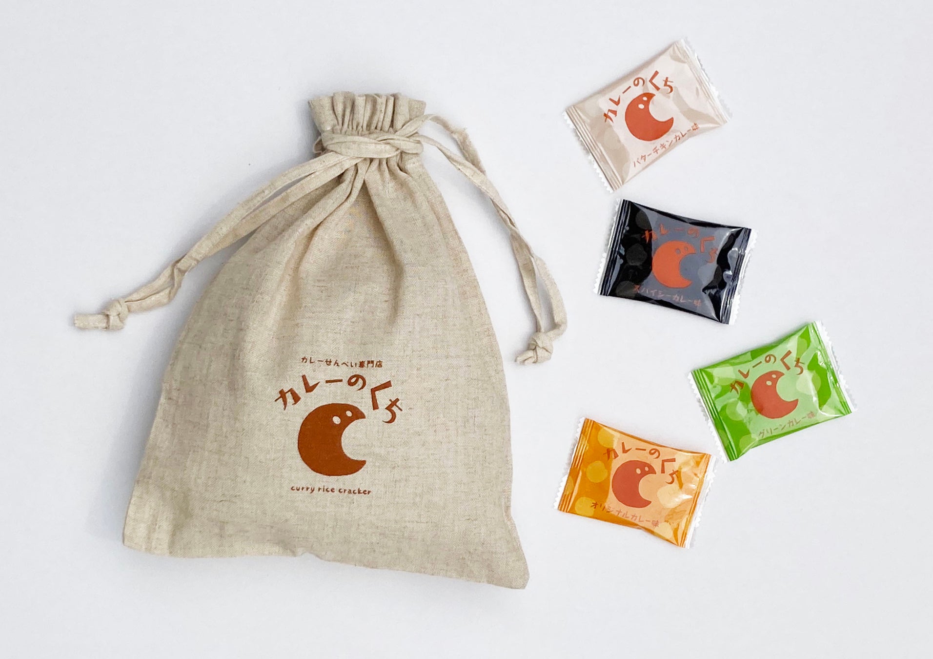 ブランド名である「カレーのくち」とは、“カレーを無性に食べたい!”の気分を現した関西地方独特の表現です。カレーのスパイシーな香りが漂う時、ふとした瞬間にカレーが食べたくなった、「カレーのくち」になっているお客様に専門店のこだわりのカレーせんべいをお届けしたいという思いを込めて名付けました。