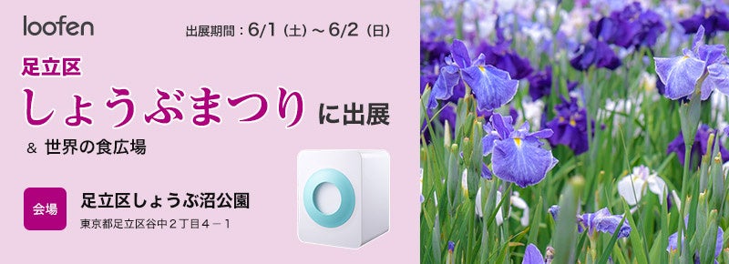 しょうぶまつりは、都内有数のハナショウブの名所として知られるしょうぶ沼公園で毎年開催され、子どもから大人まで楽しめる催しが満載のイベントです。「loofen(ルーフェン)」は、ゴミの減量や資源化、生ゴミ処理機購入費の補助制度の認知を広める活動を足立区環境部と連携して行います。