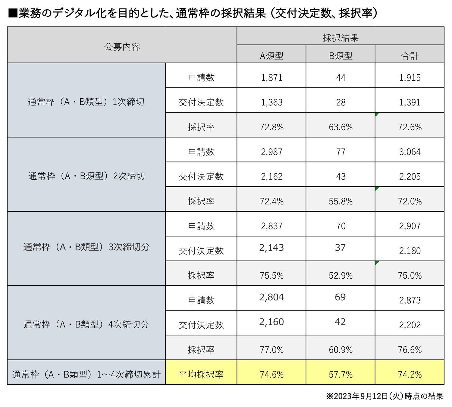 ※平均採択率と交付決定数は2023年1次から4次締切までの実績値