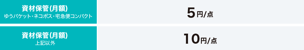 ・資材保管料:一律料金から資材のサイズに応じた2種類の料金体系に変更(一律月額10円/枚から5円/枚を新設)