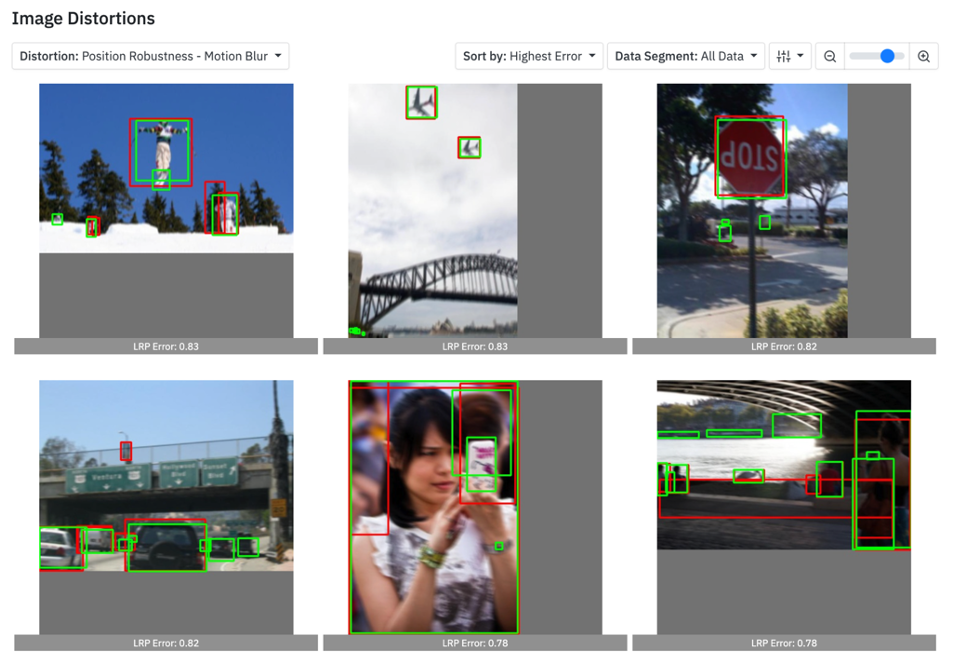 物体検出AIでは、バウンディングボックスの位置ずれ、物体の検出漏れ、誤検知・過検知、あるいはクラス分類ミスといった問題が頻繁に発生します。Citadel Lensのオブジェクトディテクション版では、そうした問題を自動検出し、IOU・Recall・Precision等の指標に基づき、その原因を一つ一つの対象オブジェクト毎に容易に分析することができます。