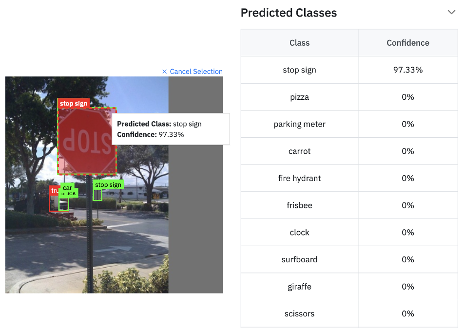 画像に付加されたメタデータや、画像固有の明るさ等の特徴量を組み合わせたデータスライスを実行し、精度の出ていないデータセグメントを自動で洗い出した上で、データセグメントごとのさまざまな精度指標を容易に確認することも可能です。