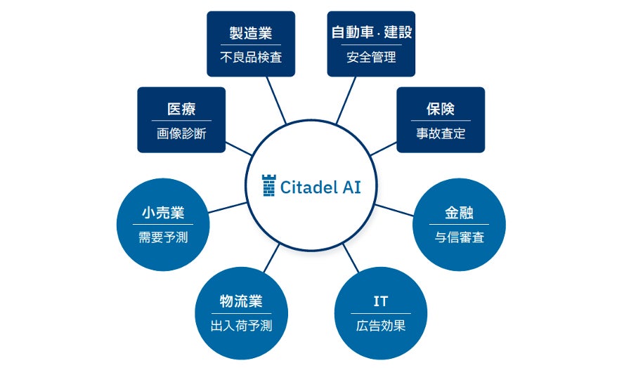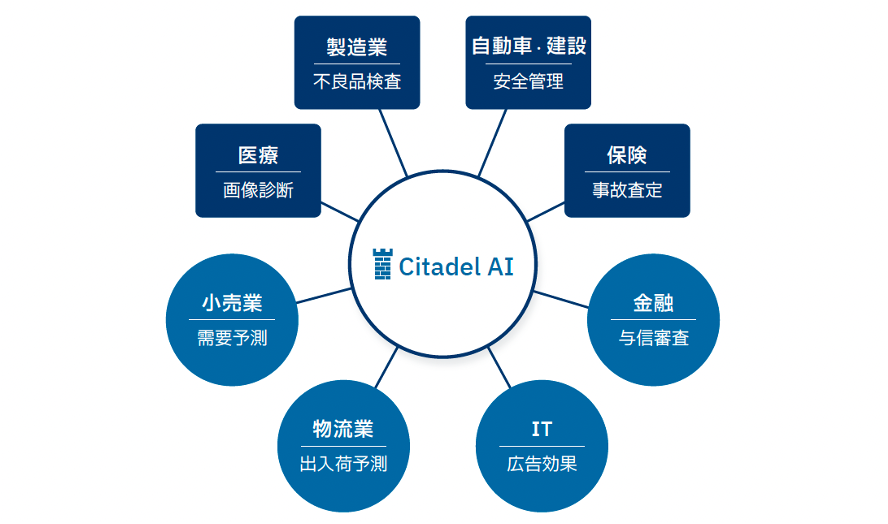 Citadel Lensは、需要予測・出入荷予測・与信審査・不正検知・広告効果測定といった数値や文字など表形式データに基づいて推論を行うAIから、画像診断・不良品検査・安全管理・事故査定といった画像データを活用したAIまで、幅広い分野のAIに汎用的に対応。お客様をビジネス上のリスクやセキュリティリスク・コンプライアンスリスクからお守りします。